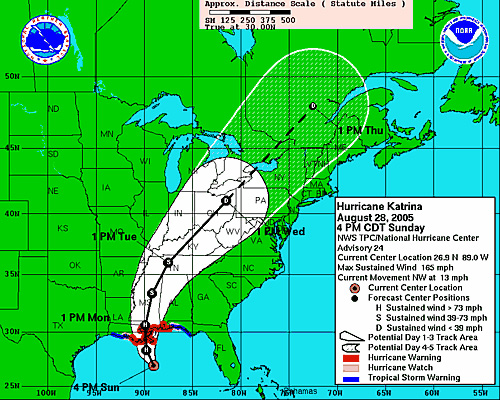 Here’s the latest consensus projection from NOAA on Hurricane Katrina’s path: