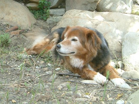 My wife Val went home to make dinner, and I continued to walk up the stream–in the dark–for about a mile. Stumbling over rocks. Wondering what could have happened. Djelka, who’s now twelve, doesn’t see as well as she used to. Could she have fallen in a pool and drowned? Could the coyotes have surrounded her? Lucy looked anxious, and went home. As I turned home a half-hour later, I kept calling and clapping, and heard a lot of barking from the neighbor’s house. I figured it must have been their dogs…but next morning we found Djelk trapped in a dry oil sump pit, about a yard deep, into which she had fallen the day before. She must have heard me, and barked in response, but I dismissed it, thinking it couldn’t be her, we’d already been there. If I could only have listened to her–and the land–a little better, I could have saved her from a cold night in the rain…