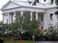 This storm — pulling in many parts of the global warming emergency — also broke through the White House perimeters and helped bring down a century-old elm tree, laying it across the driveway.