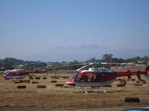 Here’s a picture of a couple of the smaller helicopters based at the fire helicamp not far from us in Upper Ojai: