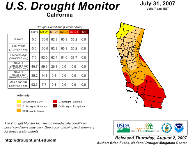 California’s Drought Today Posted byKit StolzAugust 4, 2007May 17, 2021Posted inthe land Thanks to the U.S. Drought Monitor. It’s even worse in the Southeast: Share this: Click to share on X (Opens in new window) X Click to share on Facebook (Opens in new window) Facebook Like Loading... Related Published by Kit Stolz I'm a freelance reporter and writer based in Ventura County. View more posts