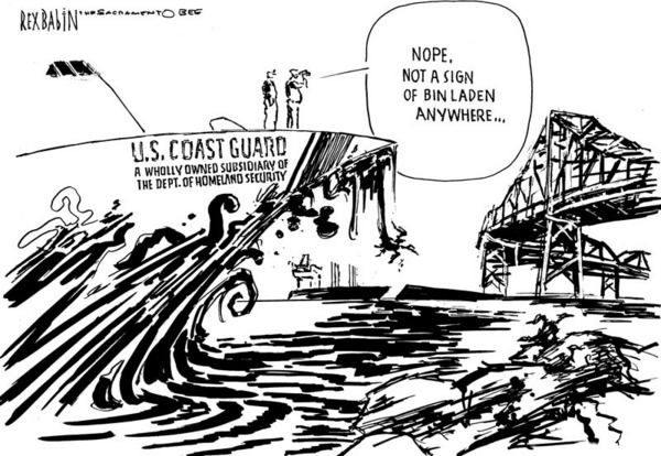 Guarding the Coast — Sort Of Posted byKit StolzNovember 15, 2007May 17, 2021Posted indisaster An editorial cartoon from Rex Babin at the Sacramento Bee, via McClatchy. Share this: Click to share on X (Opens in new window) X Click to share on Facebook (Opens in new window) Facebook Like Loading... Related Published by Kit Stolz I'm a freelance reporter and writer based in Ventura County. View more posts