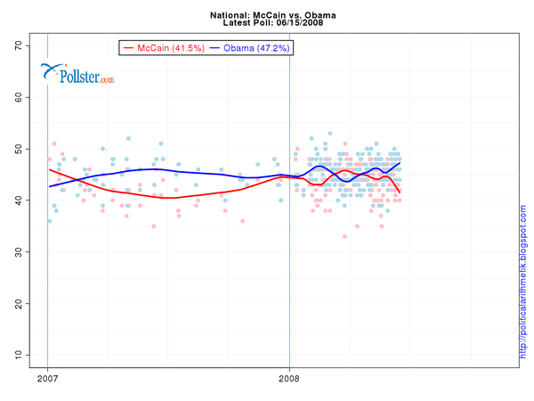 projection for November on June 16: Obama 51.5 — McCain 48.5 Obama wins 305 electoral votes. Landslide ahead.