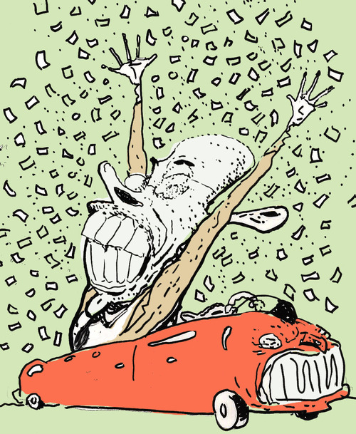 And here’s Brodner’s version of the same concept, depicting a victory parade for Henry Paulson. In his words (from a caption):