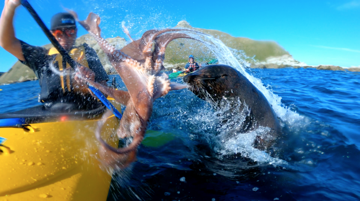 In an extraordinary incident, a sea lion flung an octopus at a young man kayaking near a New Zealand shore, and was caught live on a digital camera. The clip went viral around the world. National Public Radio’s Rachel Cohen followed up with a wonderfully thorough and appropriately playful story. Check it out: it’s astonishing: