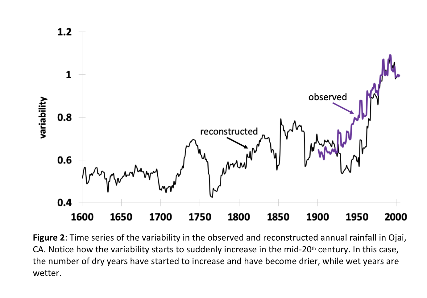 “These reconstructions [of annual rainfall using tree ring records] show that the recent increase in precipitation variability is unprecedented over the past 430 years,” wrote hydrologist Diana Zamora-Reyes in the abstract for her work presented at a scientific conference in December in San Francisco.