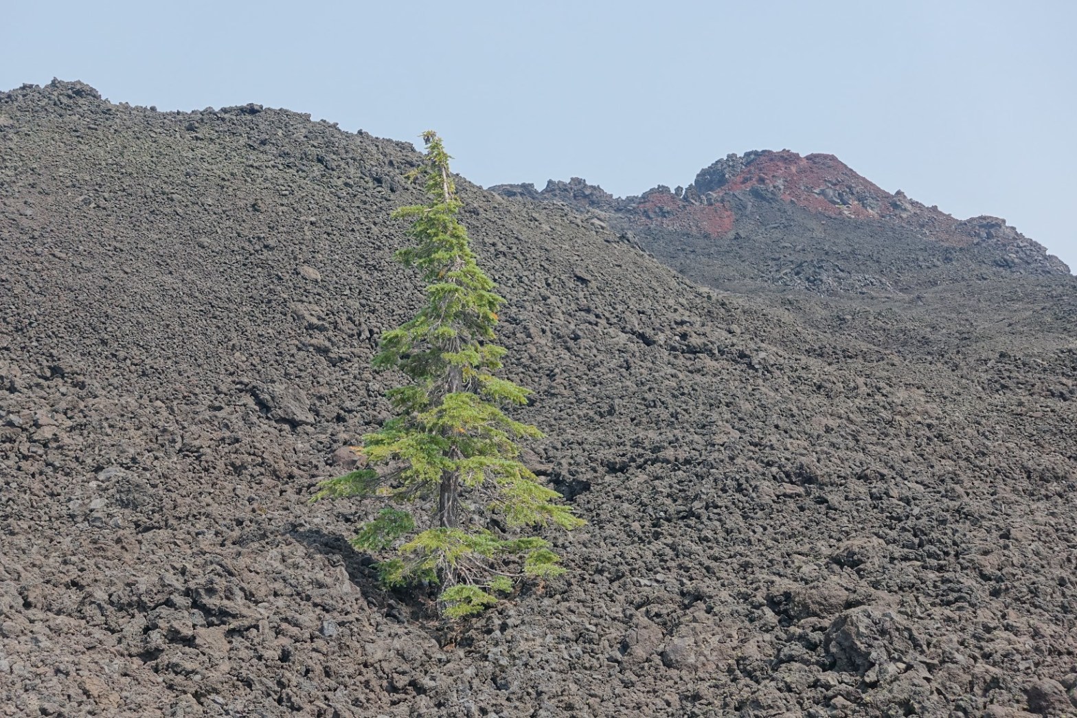 The force through which the green fuse drives the flower and this tree — my God Almighty, How is this even possible? The first vegetation of any stature whatsoever seen in miles and miles along the PCT through a laval field.