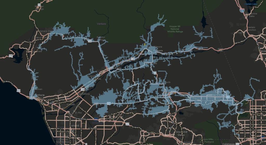 Southern California Edison has already all but promised to turn out the power for essentially all of northwestern Ventura County, from Piru to Casitas Springs, as shown in this map in the bluish-gray areas. Friday could easily be out until Friday.
